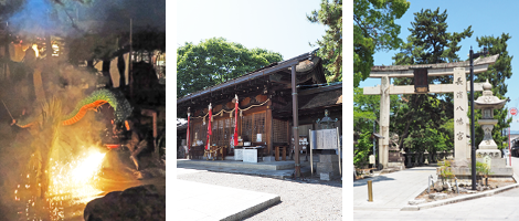 御祭神:建速須佐之男大神 大山咋大神 宇佐若宮下照姫大神 八幡大神 市杵島姫大神